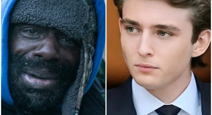It is often said that even the smallest gestures can lead to significant transformations. For James Walker, a 62-year-old homeless veteran braving the frigid streets of New York City, it was a simple plea: “Could you spare a dollar?” Unbeknownst to him, the individual he approached—a tall, reserved young man accompanied by security—was Barron Trump, the youngest son of former President Donald Trump. The ensuing events were not merely an act of kindness; they marked a pivotal moment that would profoundly impact both their lives and resonate throughout the nation.